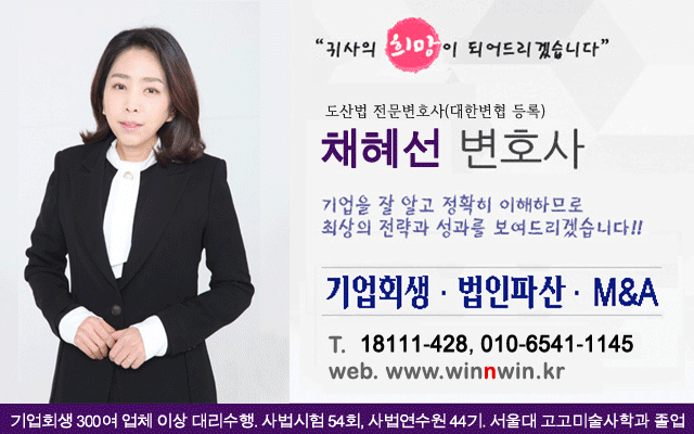 상호 : 법률사무소 윈앤윈 | 대표변호사 : 채혜선 | 주소 : (06634) 서울 서초구 서초중앙로22길 17, 메가스터디건물 2층(서초동) | 광고책임 : 채혜선 변호사