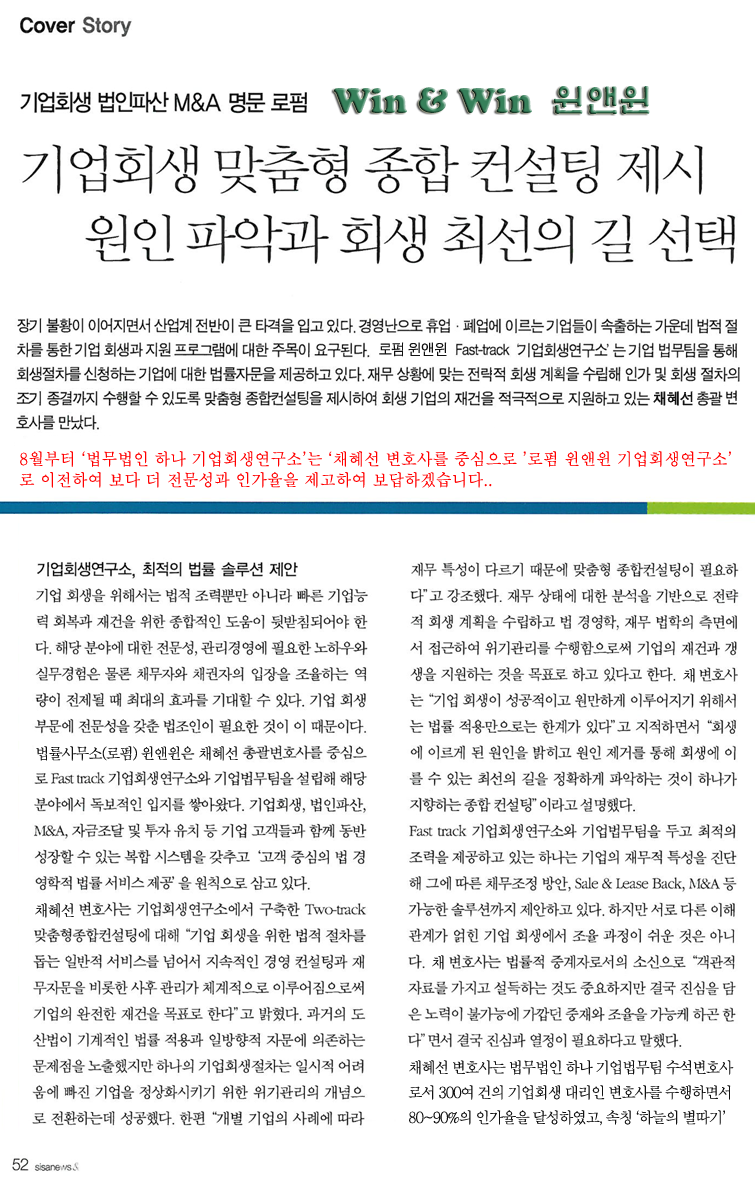법조메카 서초동을 대표하는 기업회생·법인파산 명문 법률사무소 윈앤윈에 오신 것을 환영합니다.