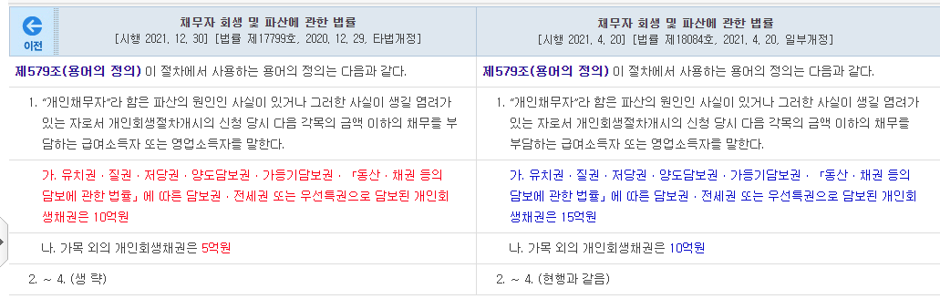 ▷ 무담보채무(신용채무 등)가 10억원을 초과하거나 담보부채무(담보대출 등)가 15억원을 초과하는 채무자.